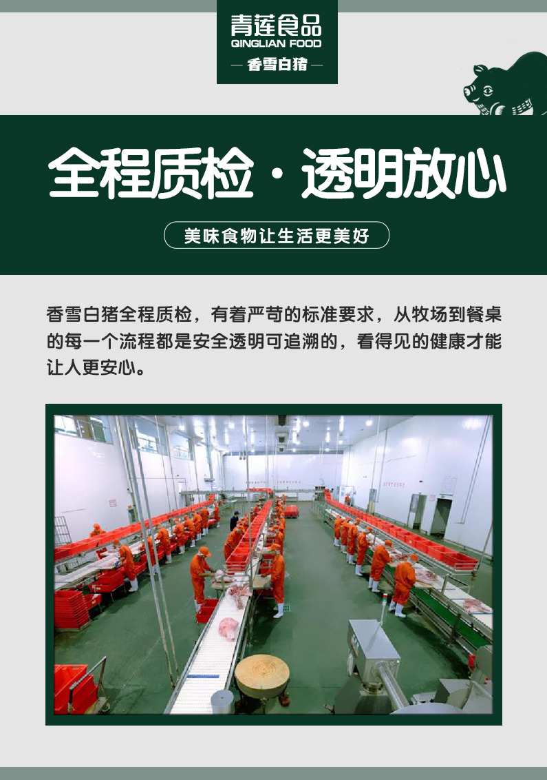 香雪白豬抗病力強(qiáng),在飼養(yǎng)過(guò)程中全程無(wú)需使用任何抗生素、化學(xué)藥物、生長(zhǎng)激素等。全程無(wú)抗飼養(yǎng)而成的香雪白豬,生鮮肉品品質(zhì)更安心。